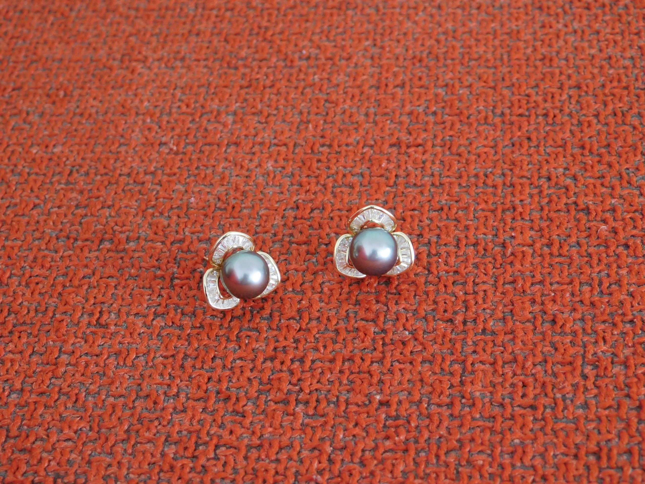 Tahiti Sea Pearl (Black) Earring with K-Gold and Crystal