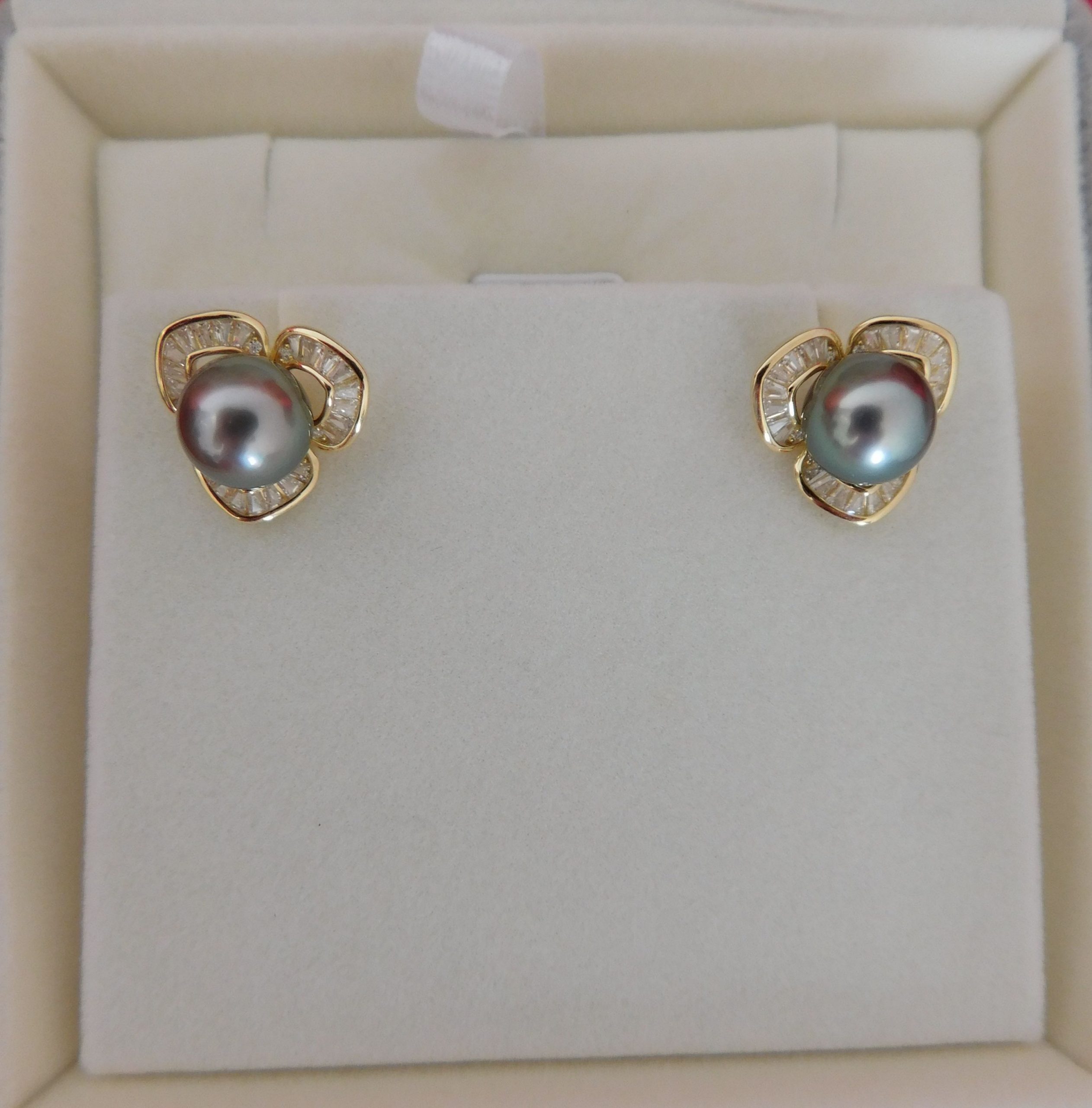 Tahiti Sea Pearl (Black) Earring with K-Gold and Crystal quantity